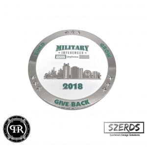 Collaboration with other Veteran Business Owners are awesome, they help everyone build better networking infostructures and communities. We really enjoyed working with Justin at Szerds and are looking forward to many more events. Justin’s company tailors executive gifts for events and companies looking to find veteran made merchandise that has been vetted for quality. His catalog has 33 vendors, covering a gambit of swag from tier one merch to tier three, he can meet any and all your needs! On top of Szerds, he is a Biztalk radio host in the San Diego area, Justin has his hands in everything, so if you need it chances are he can find it. The 2018 Military Influencers Conference Custom Challenge coin is available for sale in our shop and can be purchased with the optional gift box or in the standard PVC sleeve. If you’re interested in Purchasing a Coin please follow the link here.