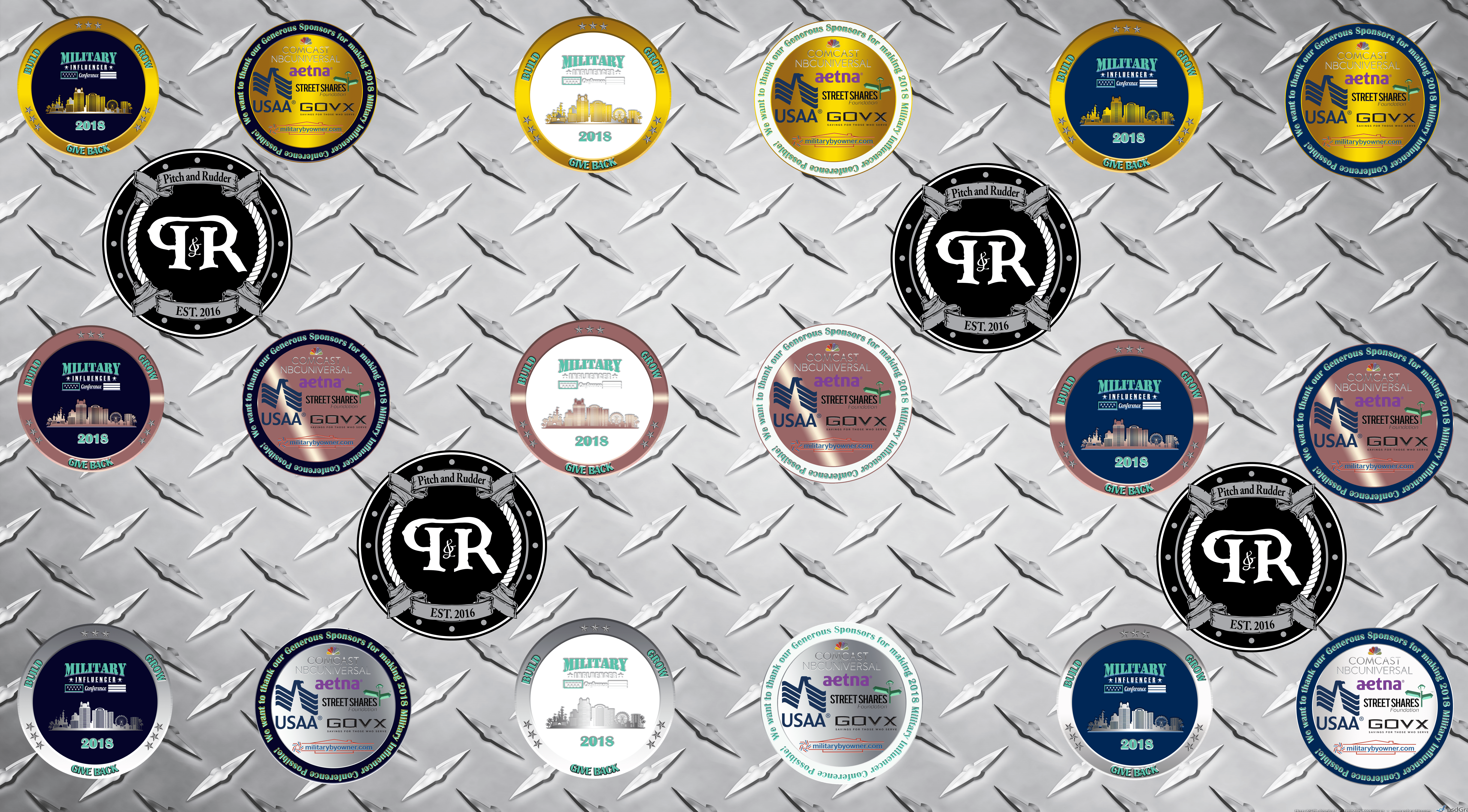 Designing Challenge Coins is always a pleasure; however, when you get to develop something for your own community, a group of kickass veteran business owners it opens up so much more joy! To say that we were excited when Justin Szerletich of Szerds, reached out to Pitch and Rudder, to design the challenge coin is an understatement! We knew that this coin would be handed out to every veteran and spouse attending the convention and we wanted to make sure that it left a lasting impression. Making a Custom Challenge coins for Veteran Business Owners spanning all the different branches of service, it was important that we made it either very general or included all the different branches of service. Like with most designs and contracts that we work, we did both.