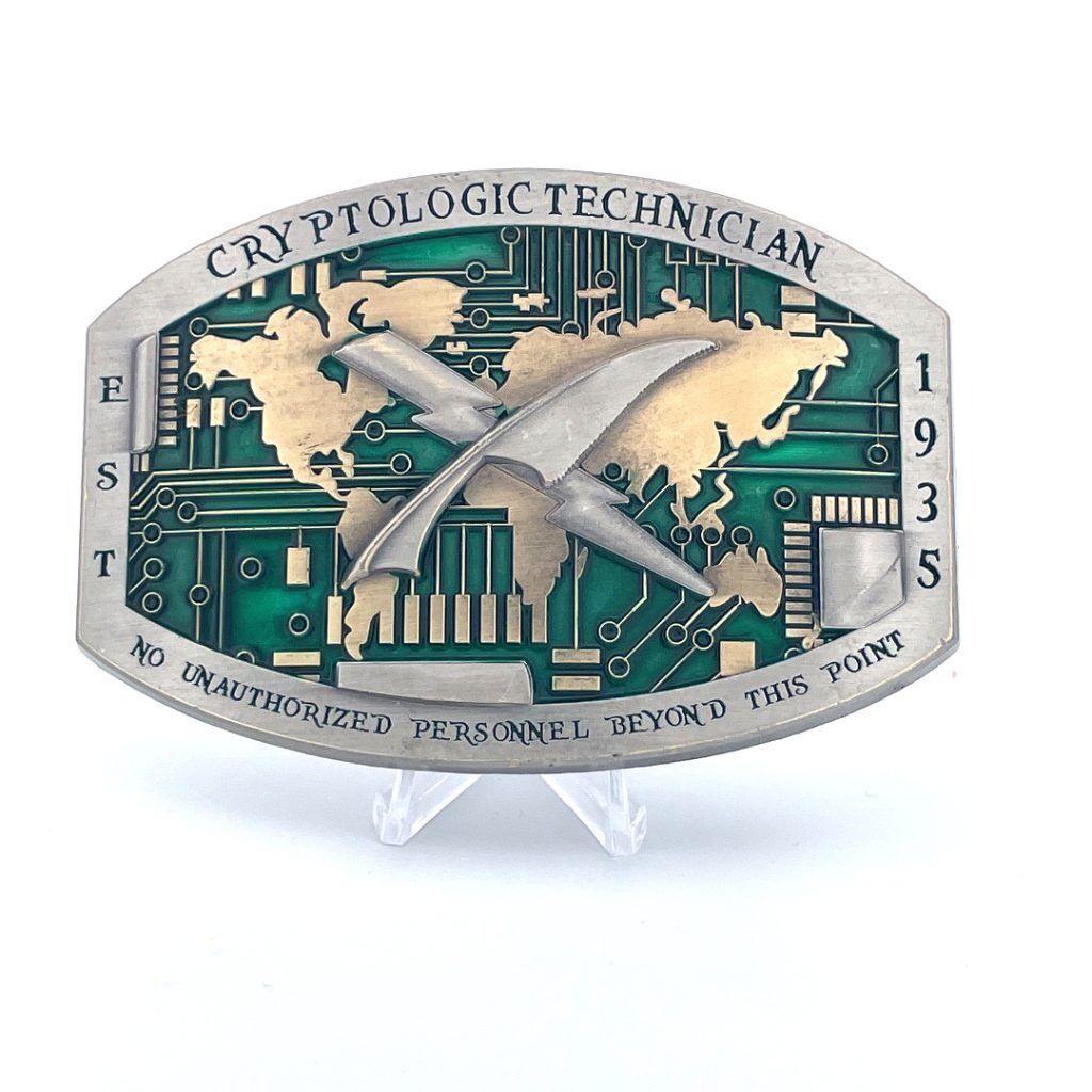 Cryptologic Technician Belt Buckle,  Wear your Custom CT buckle with pride knowing we own all that the sun touches in the Office!  Know that in your hands you have a product that’s designed by a team of Active Duty and Retired Senior Chiefs.  We designed with you in mind!