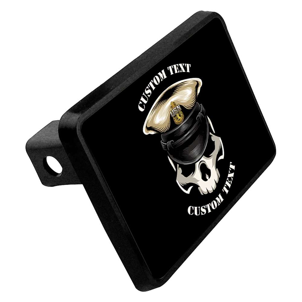 Custom Text Navy Chief Skull Trailer Hitch cover
