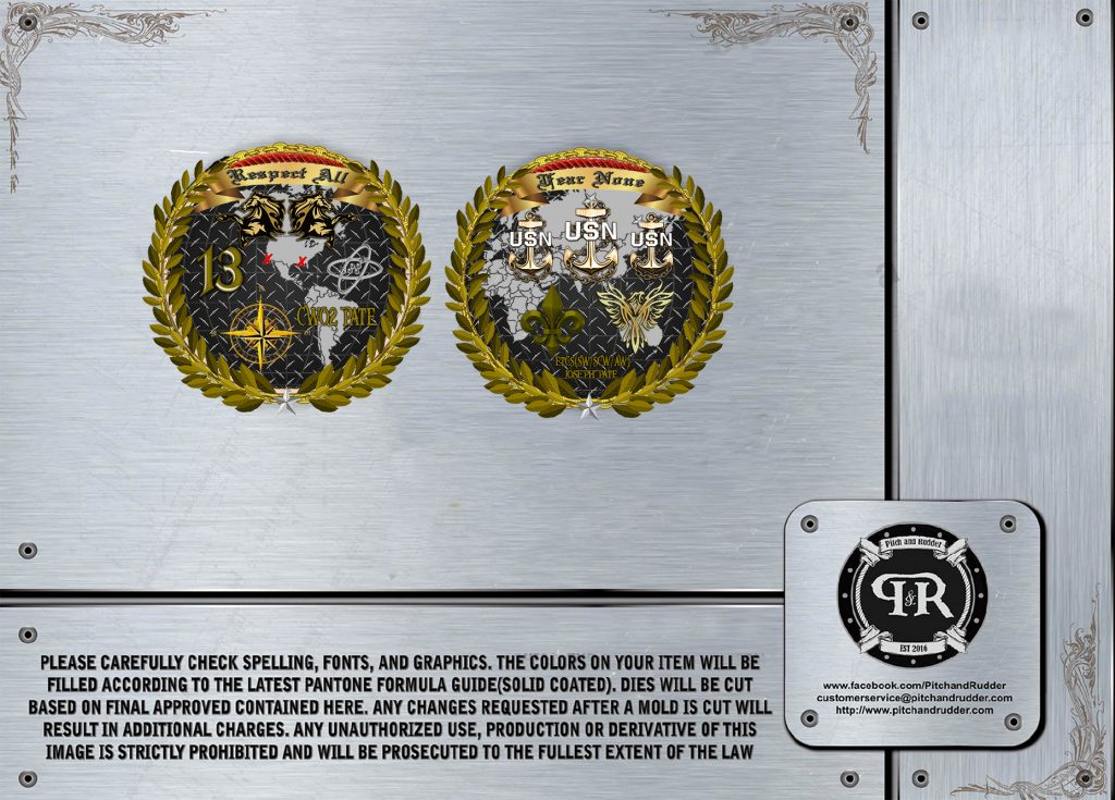 • Custom Navy Chief Challenge coin manufactured by Pitch and Rudder
