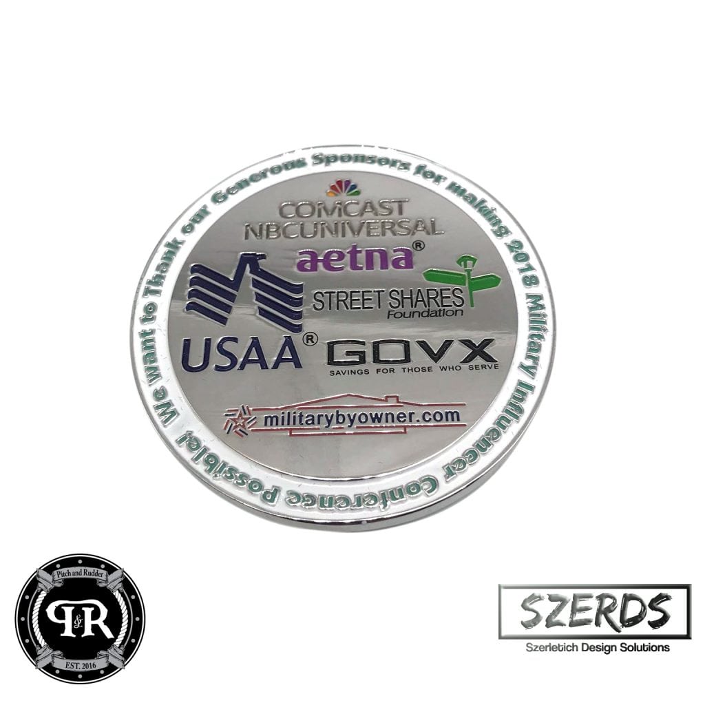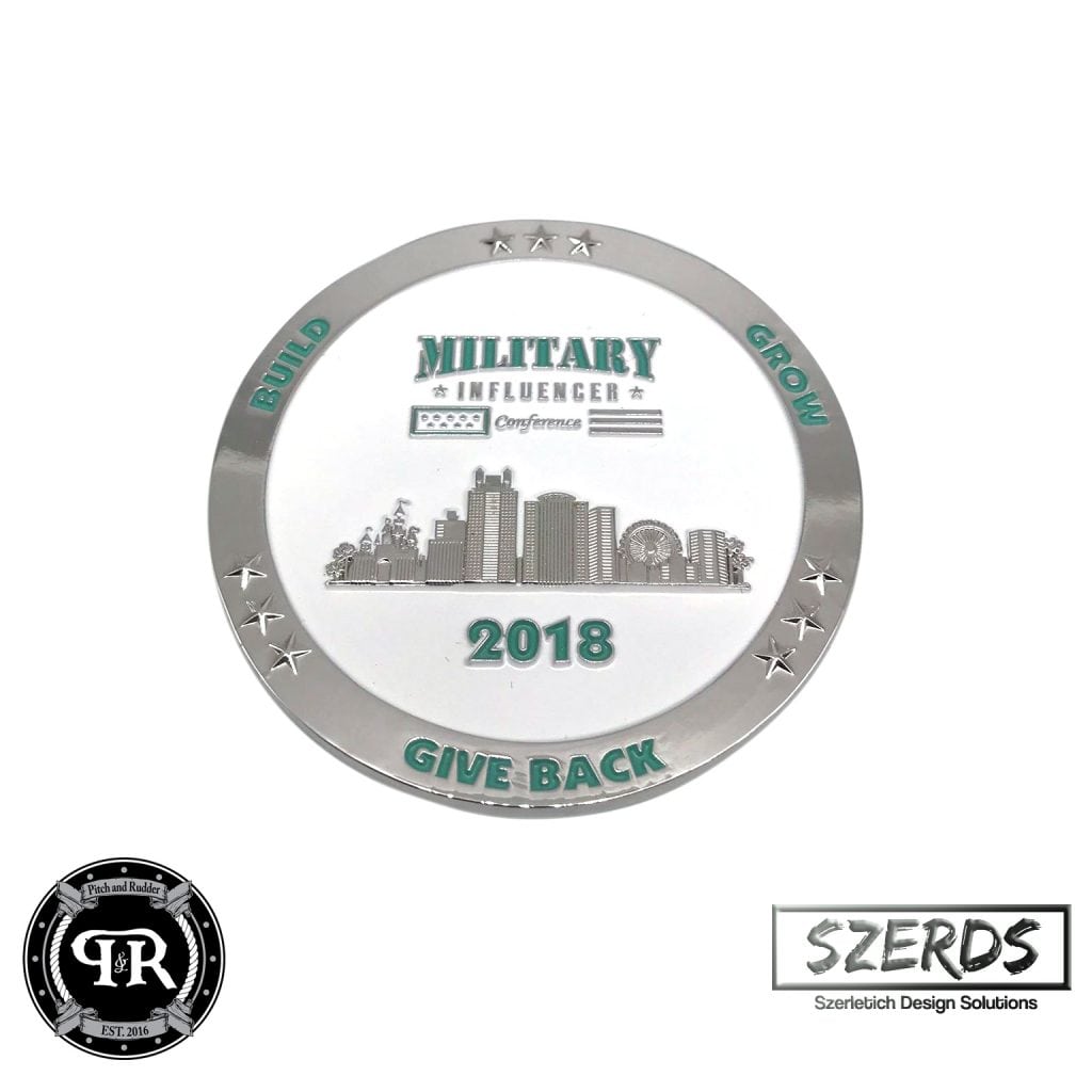Pitch and Rudder is proud to present the 2018 Military Influencer Conference Challenge coin along with an optional custom velvet box