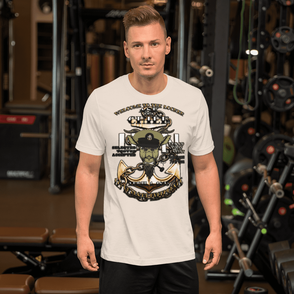 Pitch and Rudder is proud to present our next addition to our Navy Chief Apparel line up;  Welcome to the locker, Navy Chief T-Shirt.  This is a Pitch and Rudder one of a kind design, built from the ground up by Chiefs for Chiefs, targeting those Chiefs that are tired of wearing the simple “Anchor up” line up that can be found all over the internet, be it Amazon, or at the Naval Exchange.  We wanted to design something worth wearing, something new and fresh that highlighted the diverse force that is today’s Navy Chief Petty Officers.
