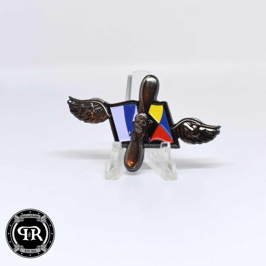 Wear your pin with pride knowing we own all that the sun touches on the flight line! Know that in your hands you have a product that was designed by a team of Active Duty and Retired Senior Chiefs. We designed with you in mind! Our AZ lapel pin is a small pin that can be worn on clothing, often worn on the lapel of a jacket or a hat. Sometimes called a hat pin, Pitch and Rudders AZ Lapel pin is designed to be worn to indicate wearer’s affiliation as an Aviation Maintenance Administrationman in the U.S. Navy. Pitch and Rudders AZ Hat pin comes in two different variations, one with an Alpha and Zulu flag on the book with a Skull and the other as a standard Naval rate emblem.