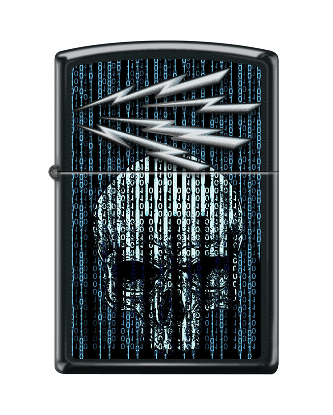 Matte Black ZIPPO windproof lighter with an exclusive PNR Information Systems Technician (IT) Rate custom design.