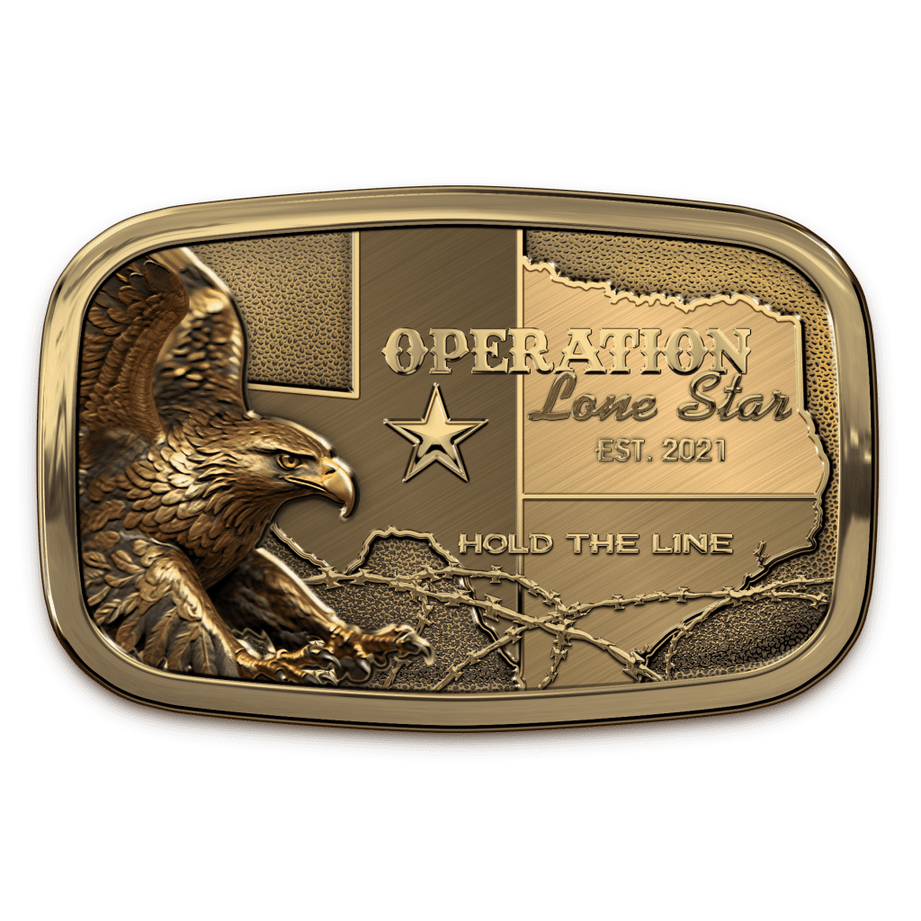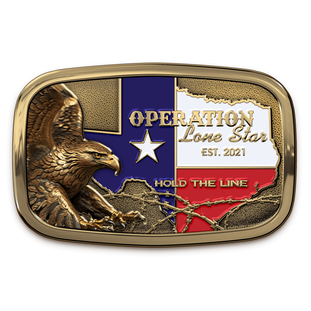 Commemorate your service with this custom 3.5-inch Western-style belt buckle, created to honor the ongoing mission of Operation Lone Star.