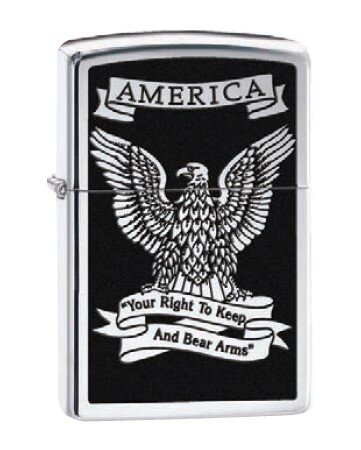 Zippo Right to Bear Arms Eagle Lighter – Packaged in an environmentally friendly gift box and made in the USA!