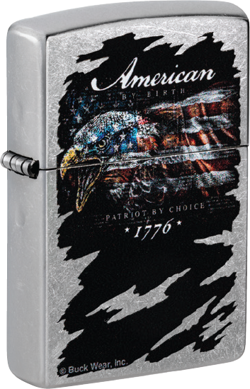 It’s a Zippo lighter, what else is needed.  Introducing Buck Wear™ – an apparel company that brings together pride, patriotism and a love of the outdoors into each of their products. This classic Street Chrome model features an eagle among the words “American by birth, patriot by choice,” in a bold Color Image design. For optimal performance, fill with Zippo lighter fuel. Packaged in an environmentally friendly gift box and made in the USA!